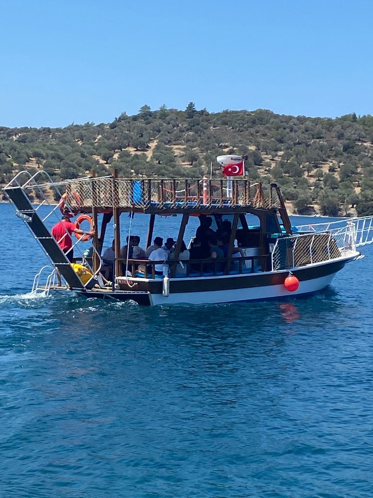Gezimiz sırasında teknede özenle hazırlanan taze ve lezzetli bir öğle yemeği ikramımız da bulunur. Genellikle günlük taze balık veya tavuk seçenekleriyle sunulan menümüz, yöresel salatalar ve serinletici içeceklerle tamamlanır. Denizin ortasında, Ege’nin muhteşem manzarası eşliğinde yiyeceğiniz bu yemek, gezinizin en keyifli anlarından biri olacak.